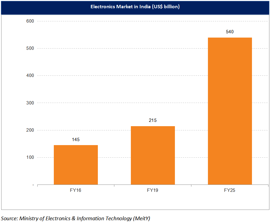 Major Government initiatives such as ‘Digital India’, ‘Make in India’ and supportive policies including a favorable FDI Policy for electronics manufacturing have simplified the process of setting up manufacturing units in India.