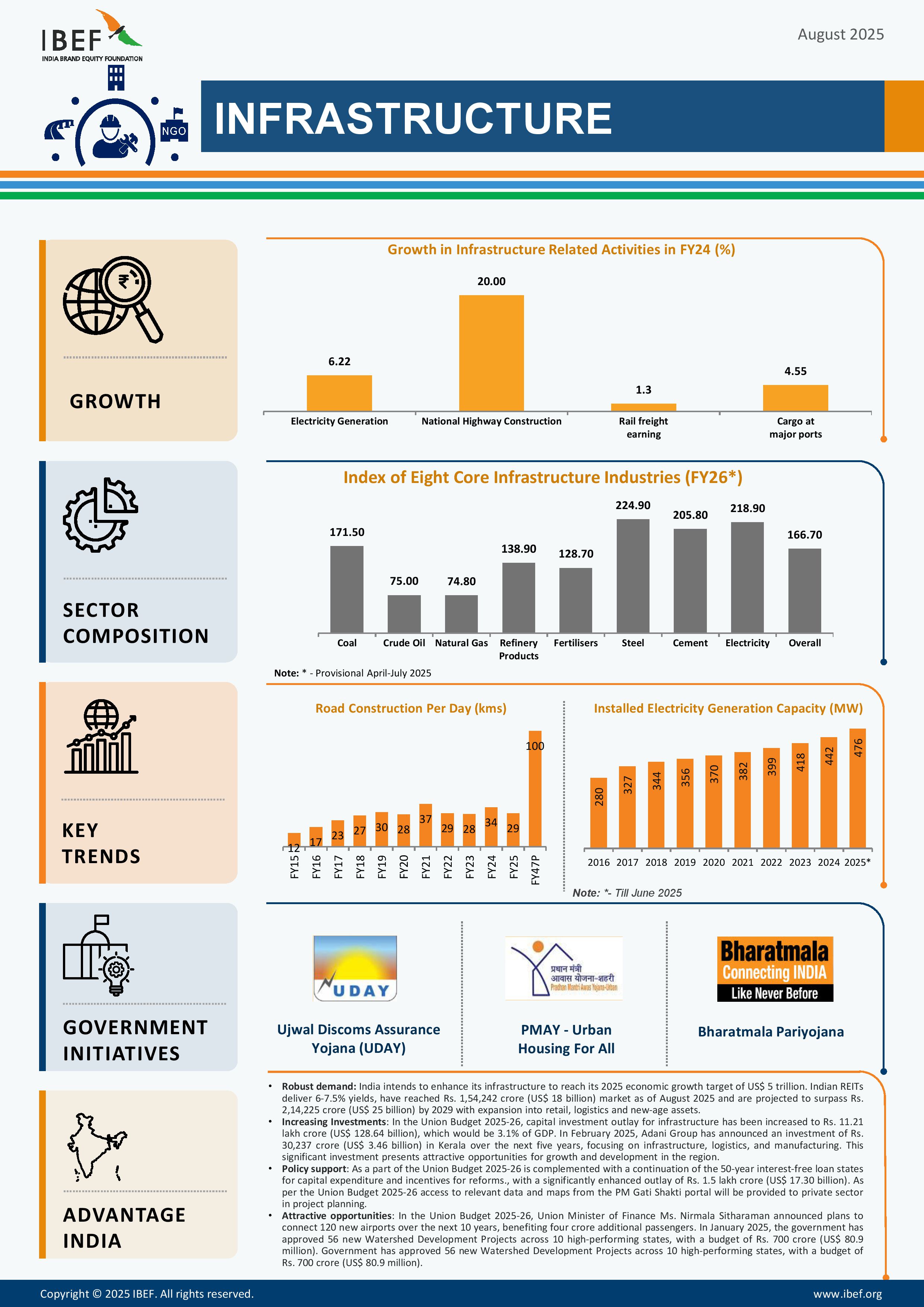 *India intends to enhance its infrastructure to reach its 2025 economic growth target of US$ 5 trillion.