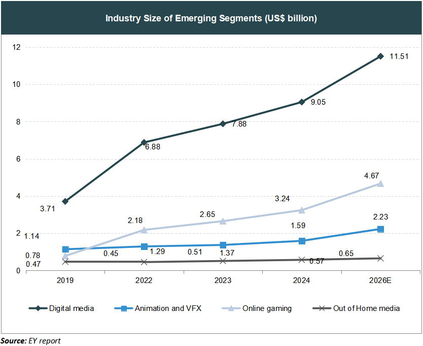 India's Animation and VFX sector is projected to grow from US$ 1.3 billion in 2023 to US$ 2.2 billion by 2026, increasing its share of the media and entertainment (M&E) industry from 5% to 6%, according to a CII GT report.