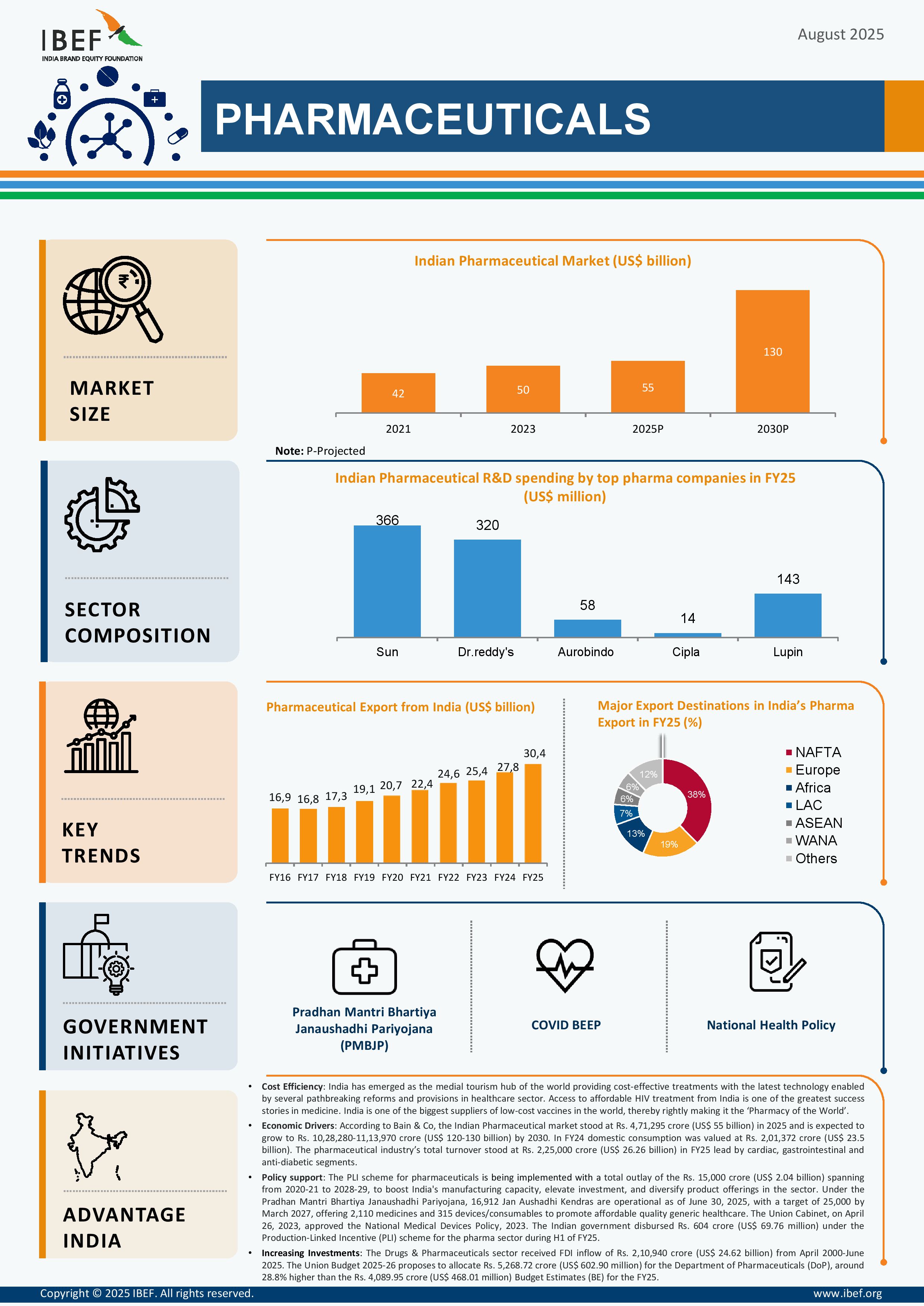 *India has the largest number of USFDA-compliant plants outside the US and over 2,000 WHO-GMP approved facilities, exporting to 150+ countries.