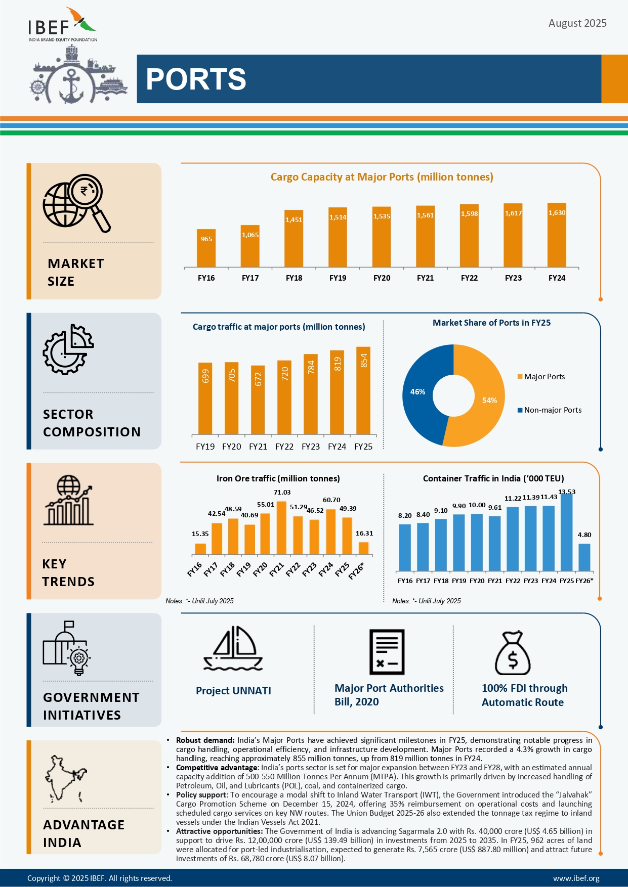 *India’s ports sector is set for major expansion between FY23 and FY28, with an estimated annual capacity addition of 500-550 Million Tonnes Per Annum (MTPA). This growth is primarily driven by increased handling of Petroleum, Oil, and Lubricants (POL), coal, and containerized cargo.
