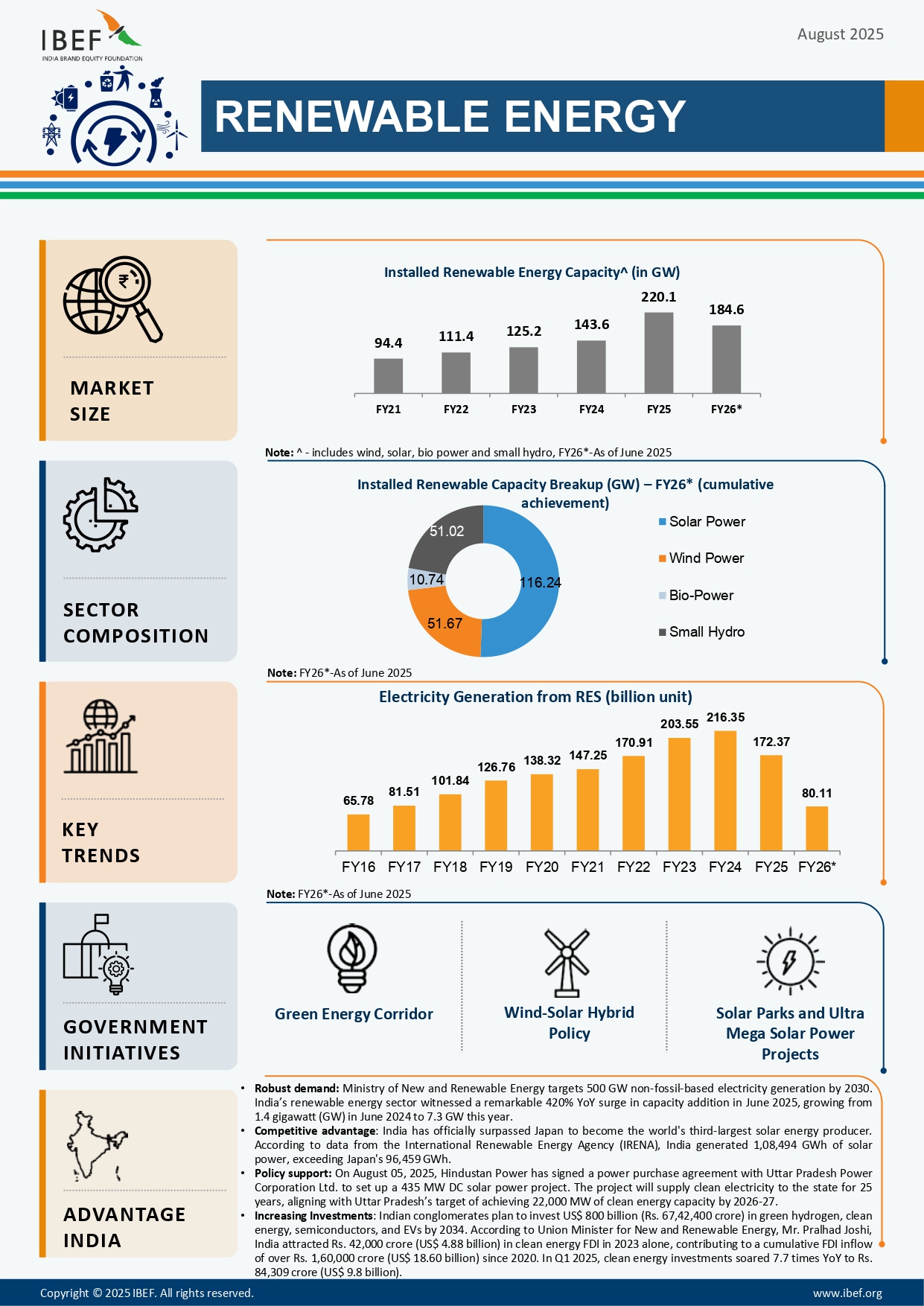 *India continues to rank fourth globally in wind power capacity, solar power capacity, and overall renewable energy installed capacity as of FY25, maintaining its position from FY24.