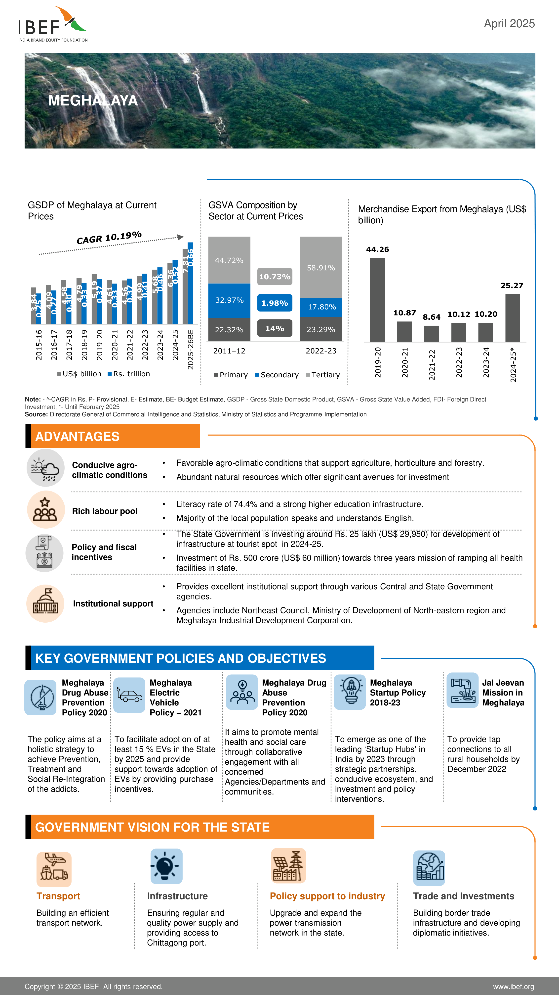 Vice-President Mr. Jagdeep Dhankhar praised Meghalaya's growth potential, emphasising self-reliance, and lauded its progress in economy, tourism, and women's empowerment, with a goal of becoming a US$ 10 billion economy by 2028.