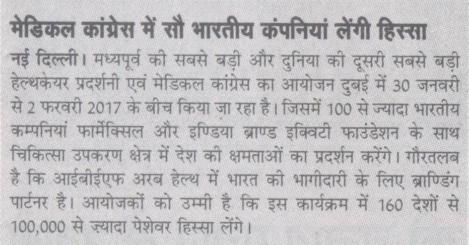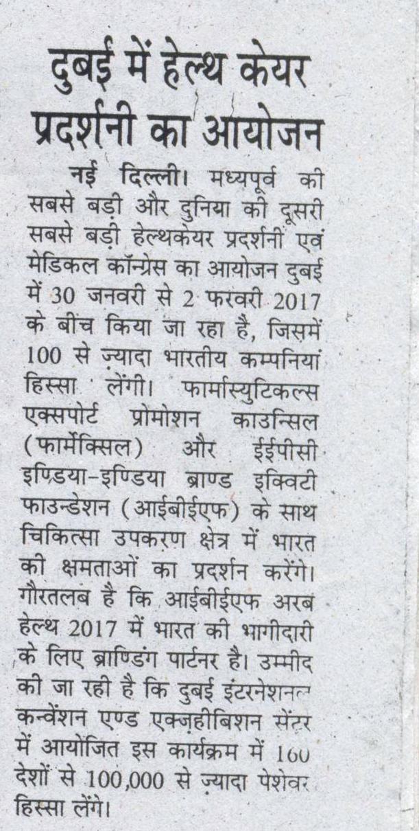 The Arab Health Exhibition & Congress is the largest healthcare exhibition & medical congress in the Middle East and Second largest in the world. Arab Health will take place from January 30 - February 2, 2017. The Event offers important opportunities to build relationships within the healthcare industry, to showcase progress and achievement in the sector, and to explore new opportunities with stakeholders in the healthcare field.