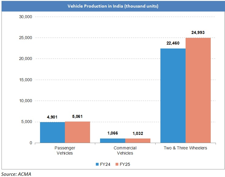 *Exports of auto components rose by 8%, reaching Rs. 1,95,726 crore (US$ 22.90 billion) in FY25, up from Rs. 1,81,196 crore (US$ 21.20 billion) in FY24.
