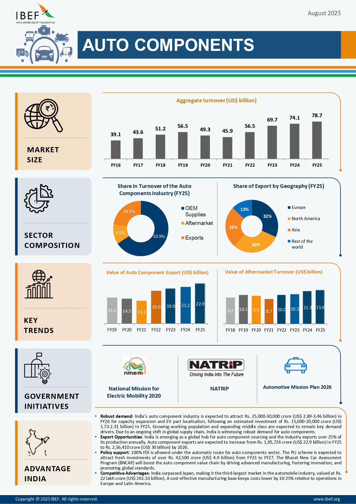 * India is emerging as a global auto component sourcing hub due to its proximity to key automotive markets such as ASEAN, Europe, Japan and Korea.
