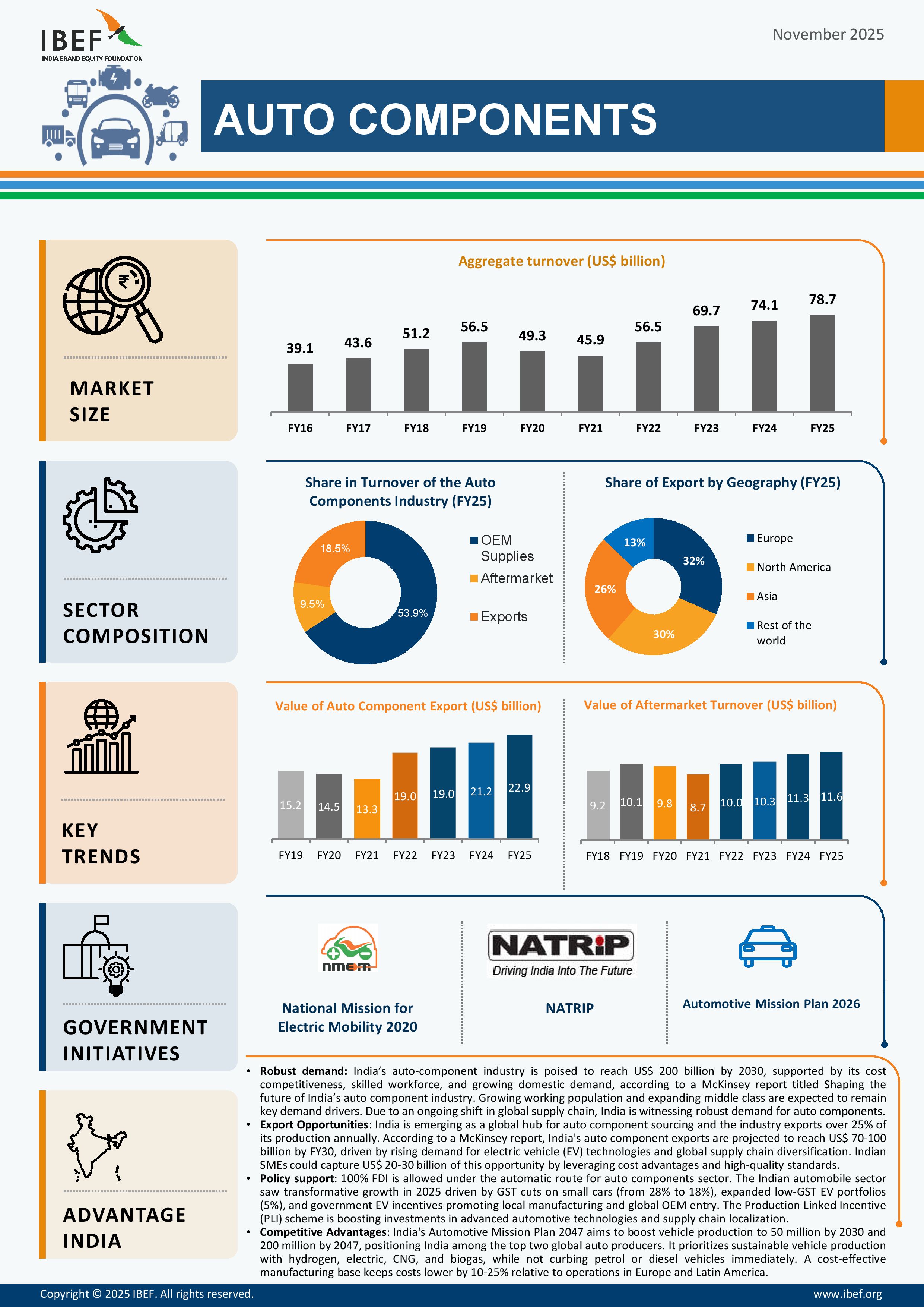 *India is emerging as a global hub for auto component sourcing and the industry exports over 25% of its production annually.