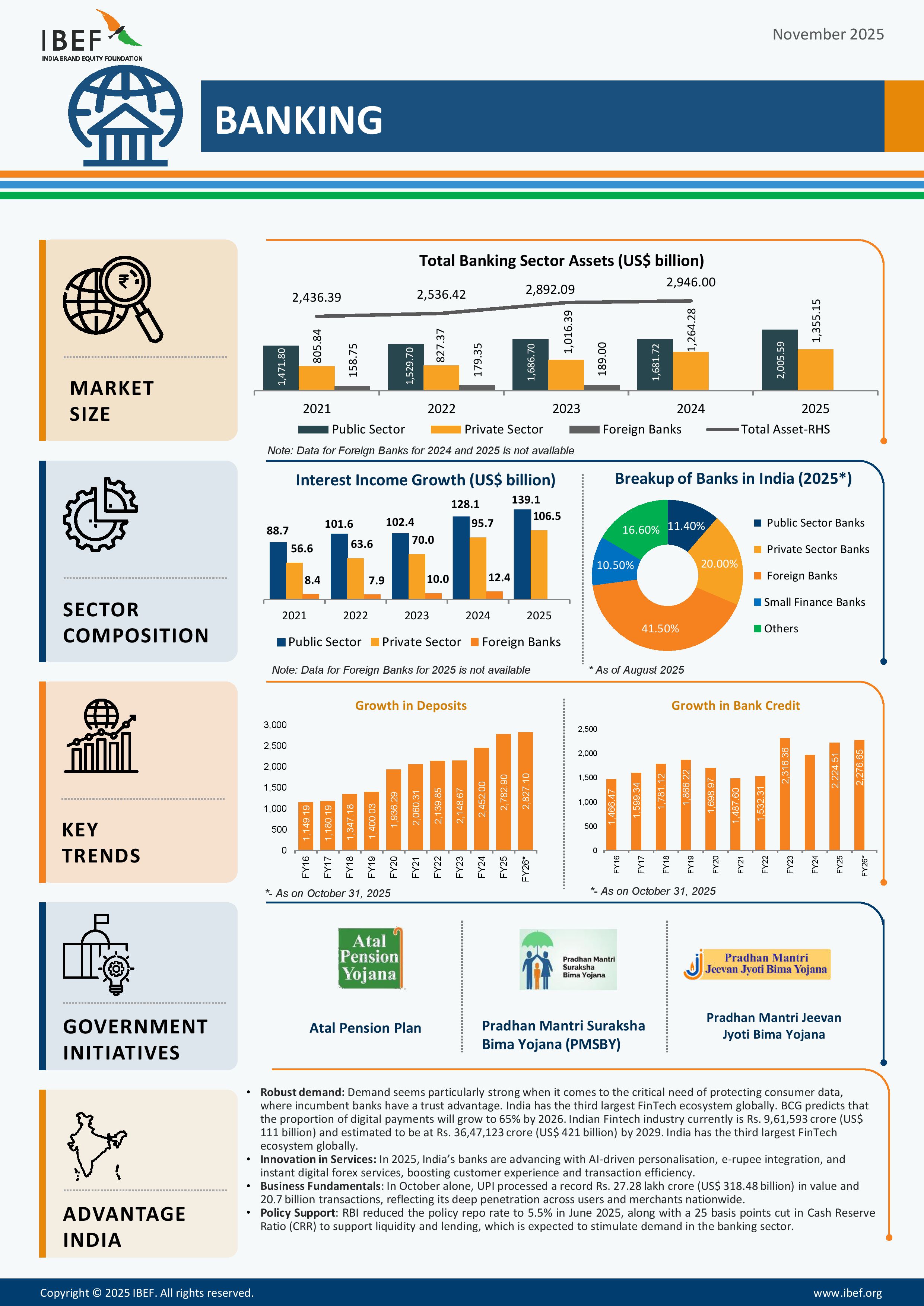 * The Indian banking industry has seen robust growth, driven by strong economic expansion, rising disposable incomes, growing consumerism, and easier credit access.