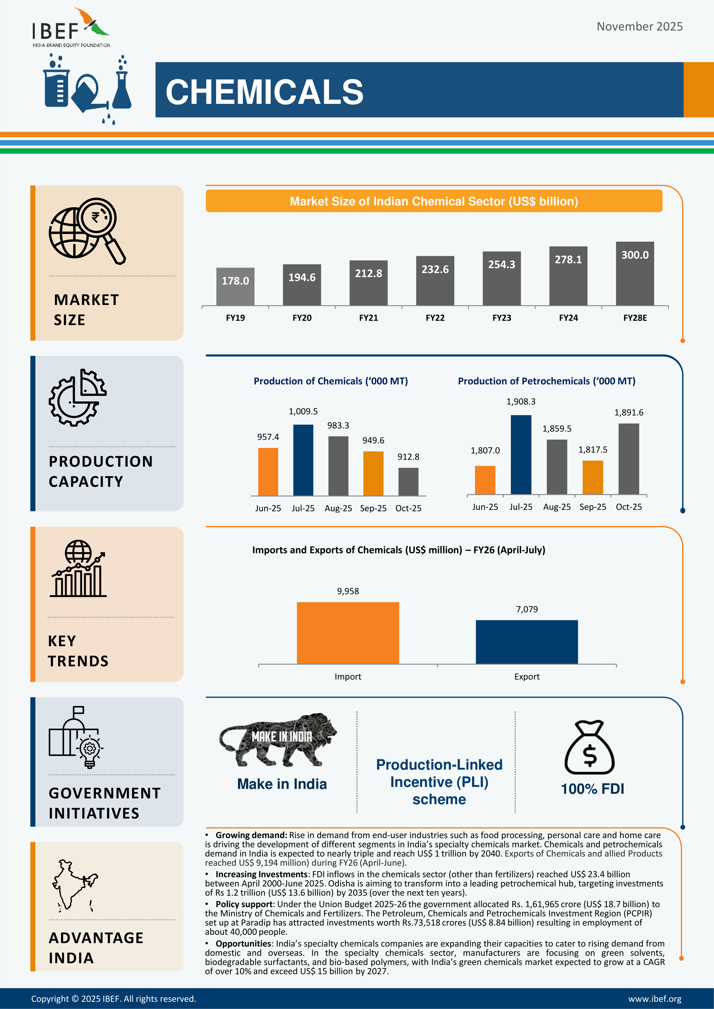 * According to a McKinsey report, Chemicals and petrochemicals demand in India is expected to nearly triple and reach US$ 1 trillion by 2040.