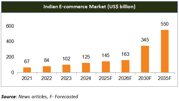 *Government initiatives like the National Logistics Policy and Digital India are boosting e-commerce by improving connectivity, streamlining logistics, and expanding digital access. These efforts aim to support the creation of a trillion-dollar online economy by 2025