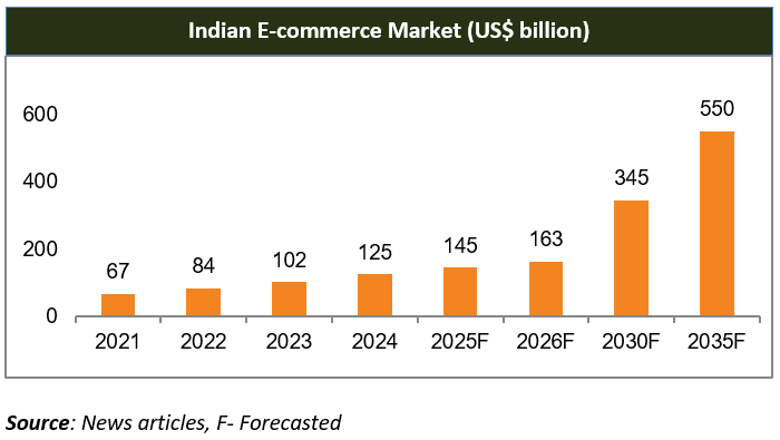 *Government initiatives like the National Logistics Policy and Digital India are boosting e-commerce by improving connectivity, streamlining logistics, and expanding digital access. These efforts aim to support the creation of a trillion-dollar online economy by 2025