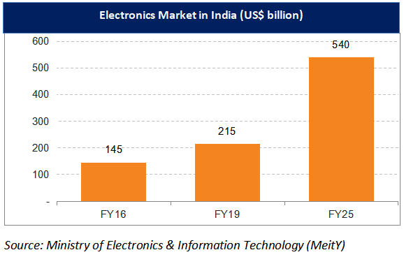 Major Government initiatives such as ‘Digital India’, ‘Make in India’ and supportive policies including a favorable FDI Policy for electronics manufacturing have simplified the process of setting up manufacturing units in India.