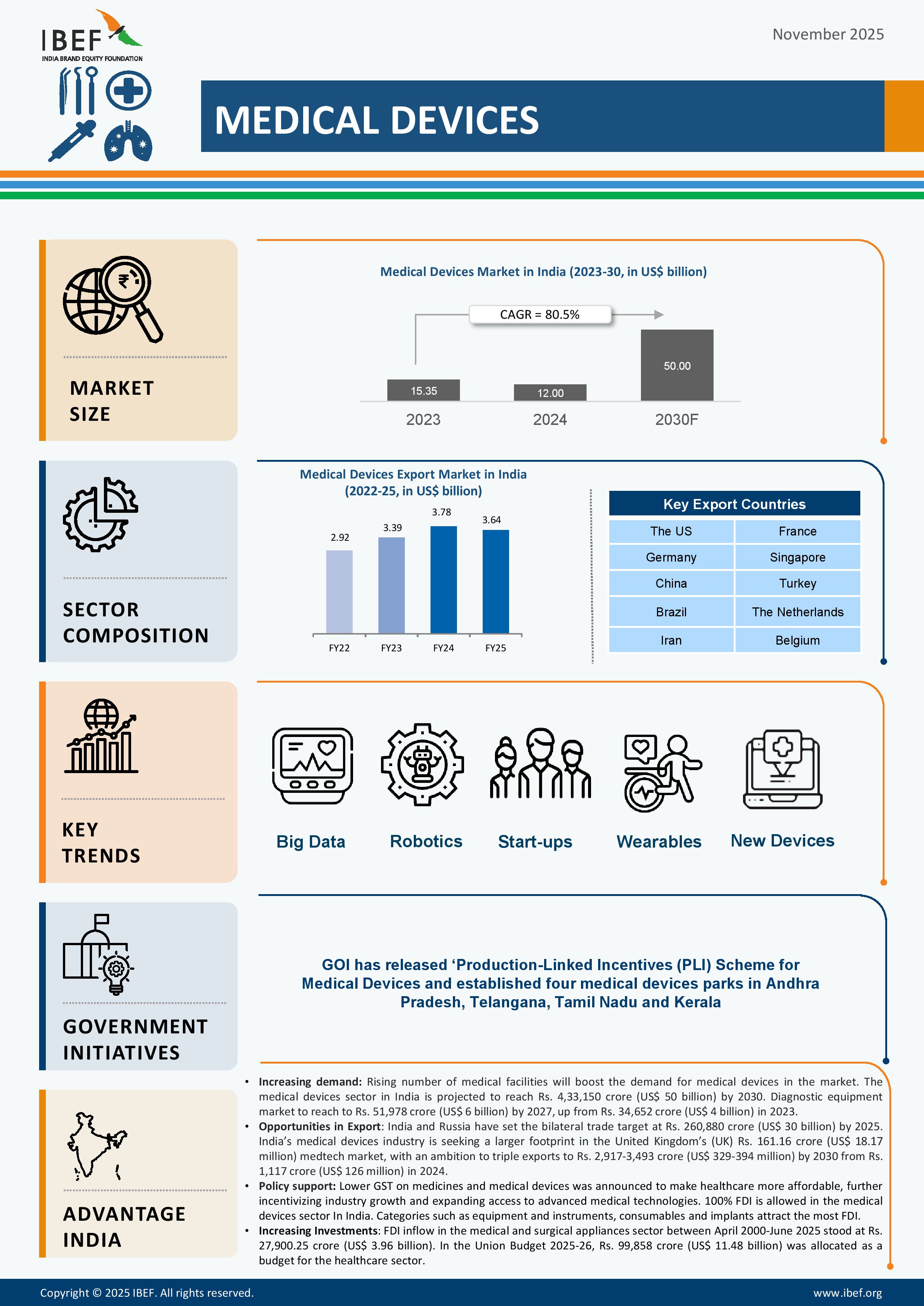 *Comprehensive policy support through the National Medical Device Policy 2023, PLI & MDP schemes, cluster assistance, HR development, standards, export promotion, and PPPs is driving growth in India’s MediTech sector.