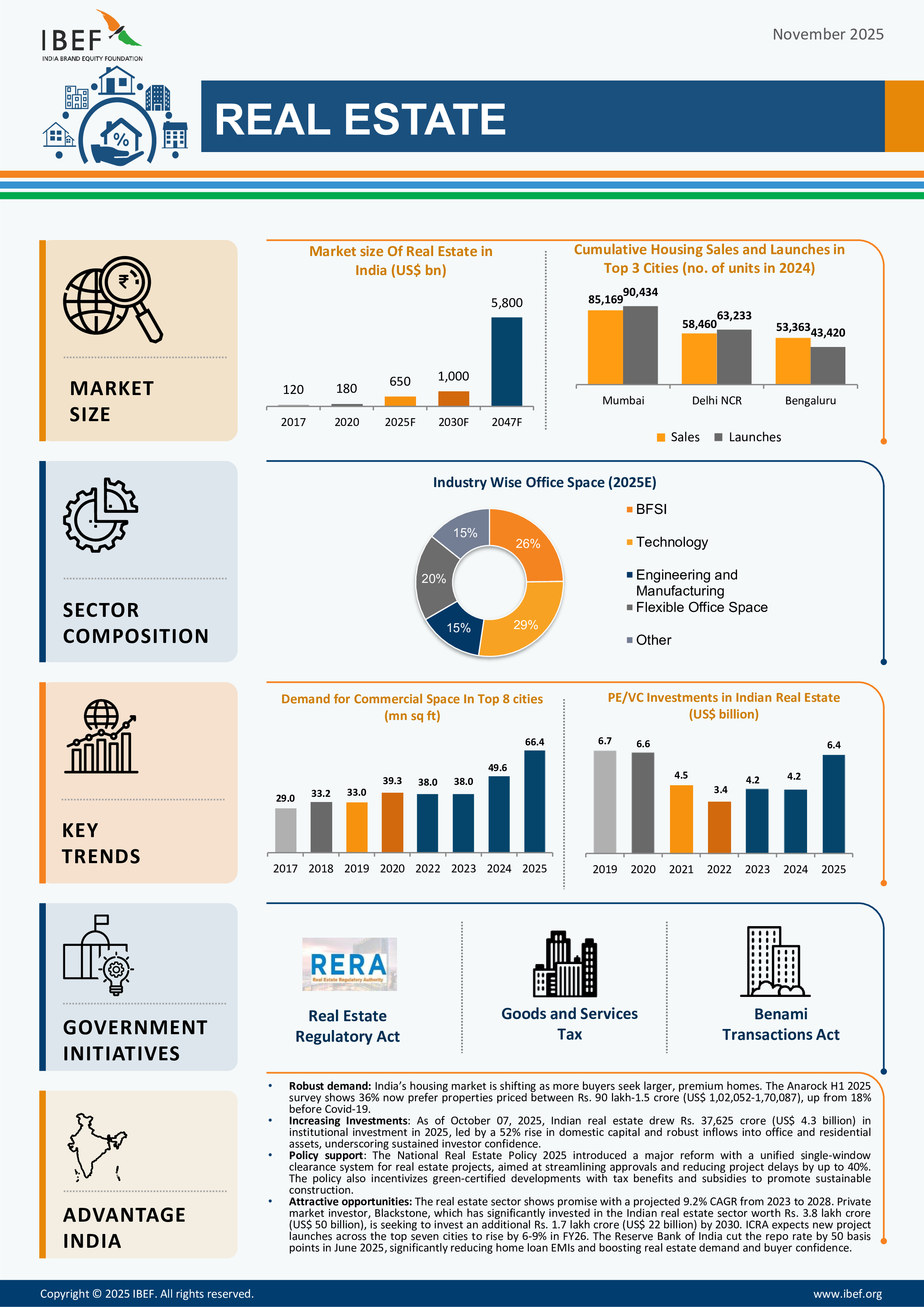 *The National Real Estate Policy 2025 introduced a major reform with a unified single-window clearance system for real estate projects, aimed at streamlining approvals and reducing project delays by up to 40%. The policy also incentivizes green-certified developments with tax benefits and subsidies to promote sustainable construction.