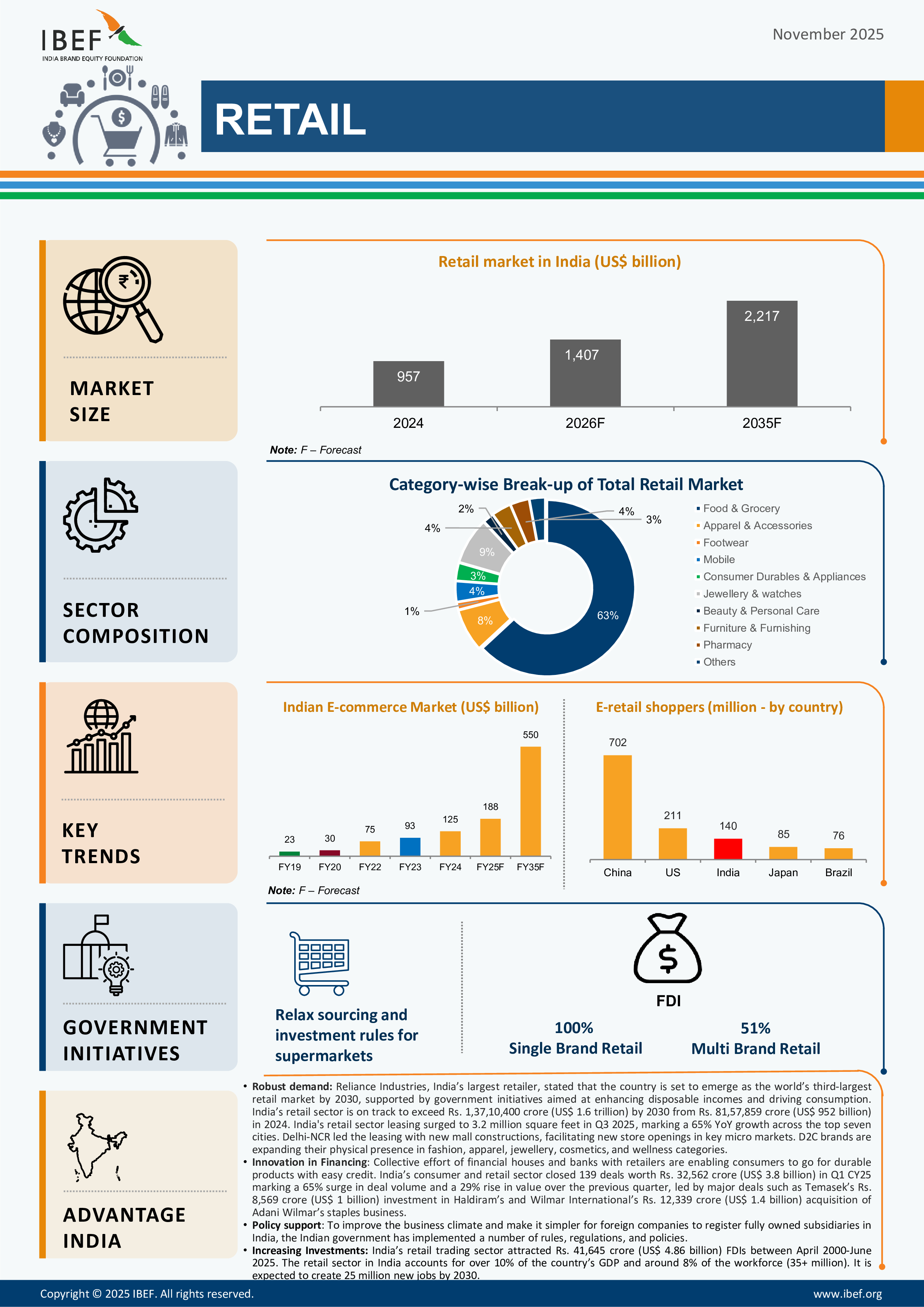 *Reliance Industries, India’s largest retailer, stated that the country is set to emerge as the world’s third-largest retail market by 2030, supported by government initiatives aimed at enhancing disposable incomes and driving consumption.