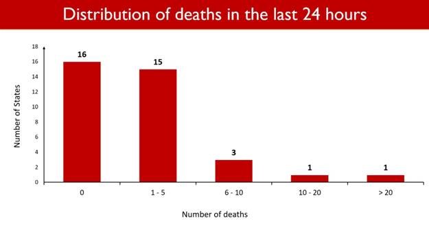 Fifteen States/UTs reported between 1-5 deaths and 3 States/UTs reported between 6-10 deaths.