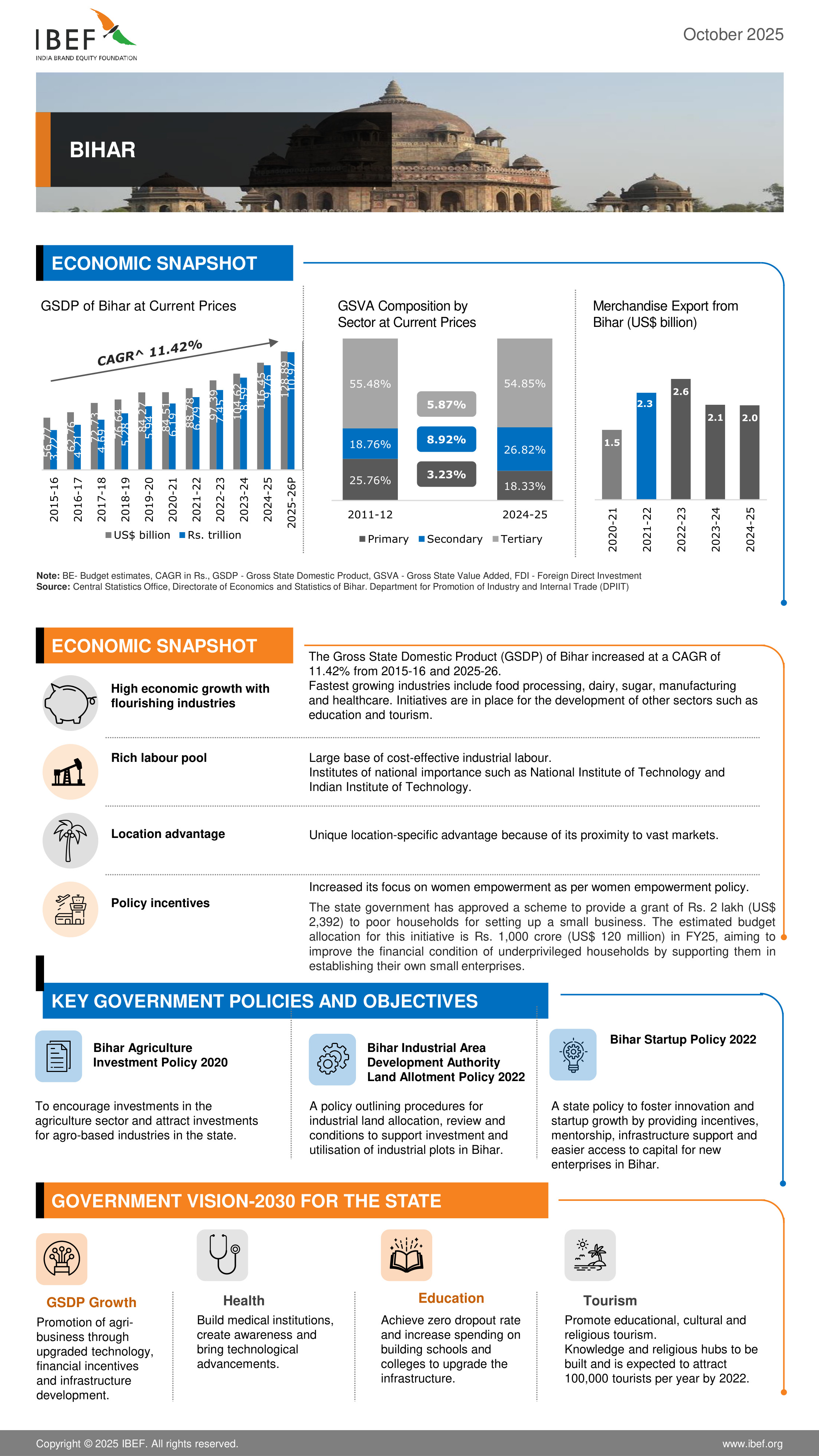 Bihar is the fourth largest producer of vegetables and the eighth largest producer of fruits in India.