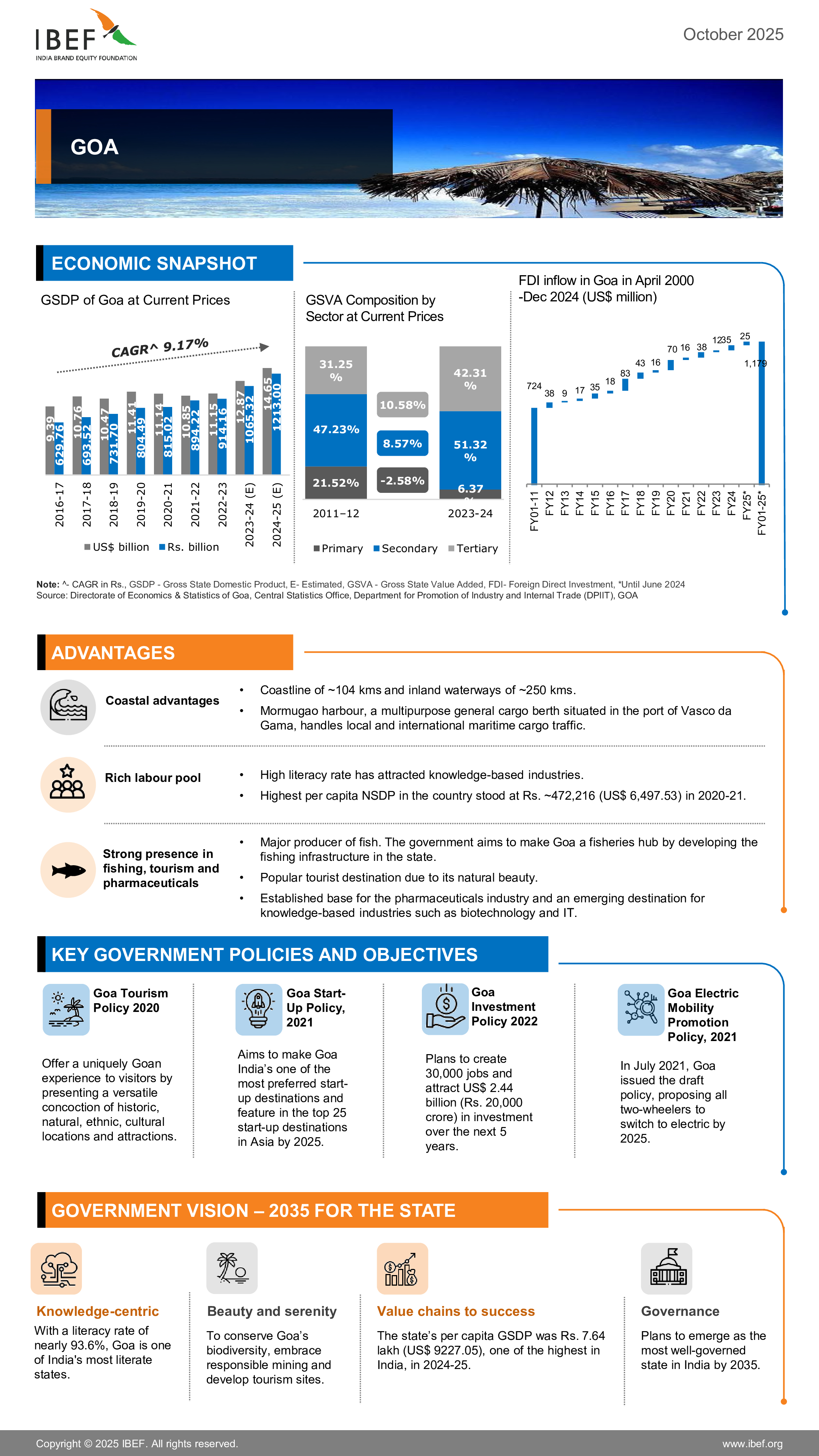 The tourism industry in Goa directly contributes 16.43% to the state's GDP and employs ~35% of the state's population.