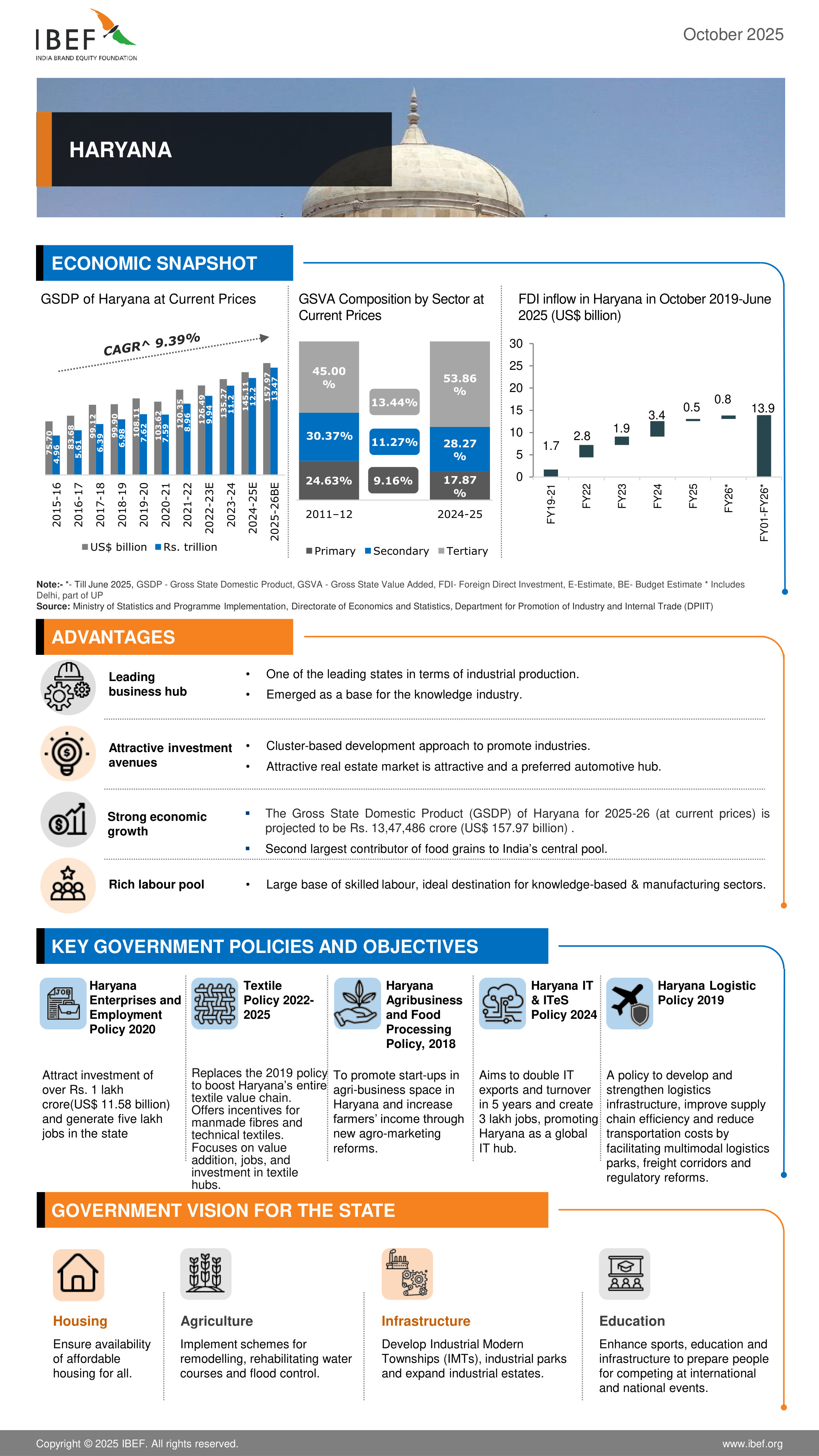 Haryana is the third-largest exporter of software and one of the preferred destinations for IT/ITeS facilities in India.