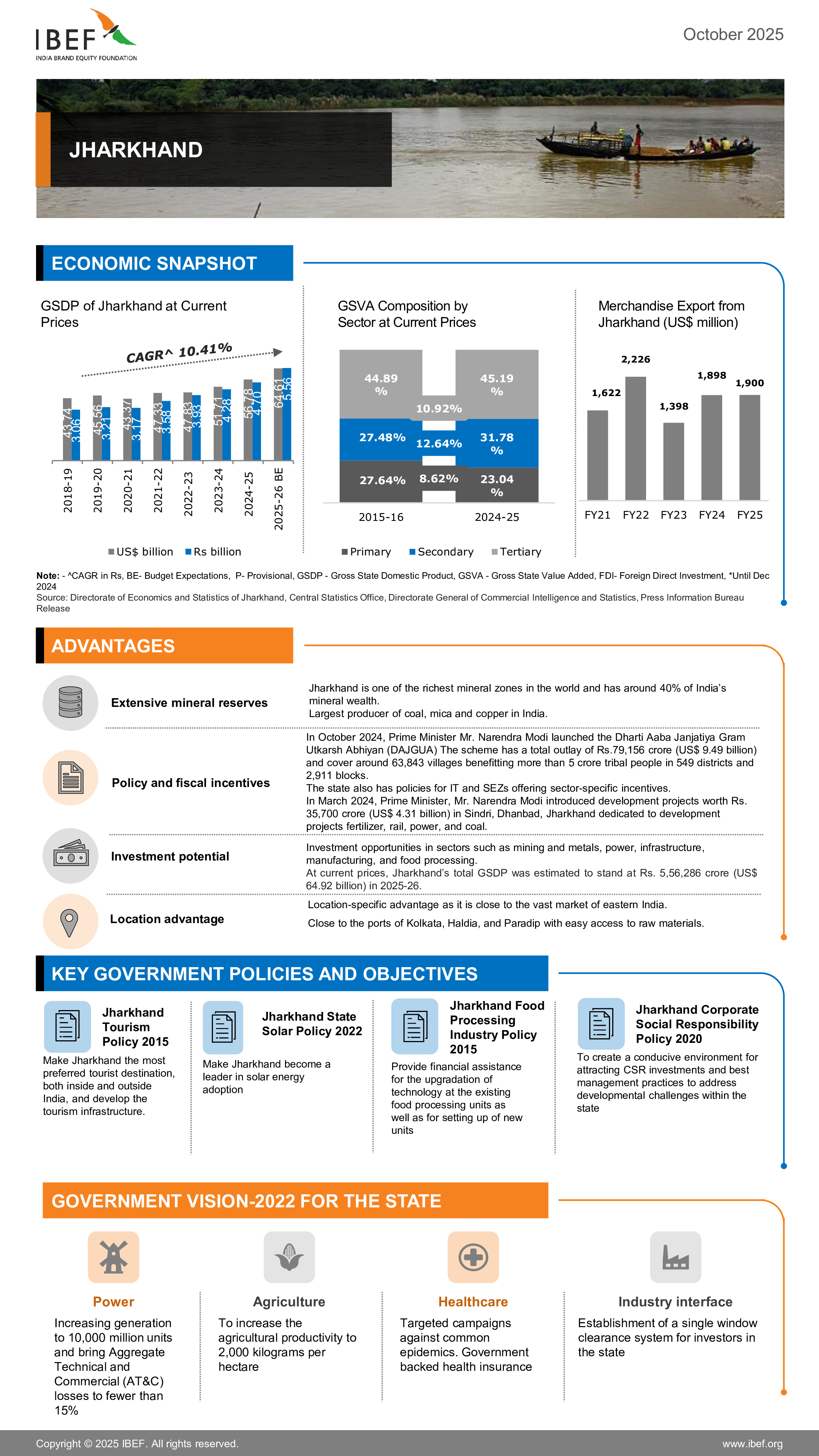 Jharkhand is the only state in India to produce coking coal, uranium, and pyrite. The state is also a leading producer of coal, mica, kyanite and copper.
