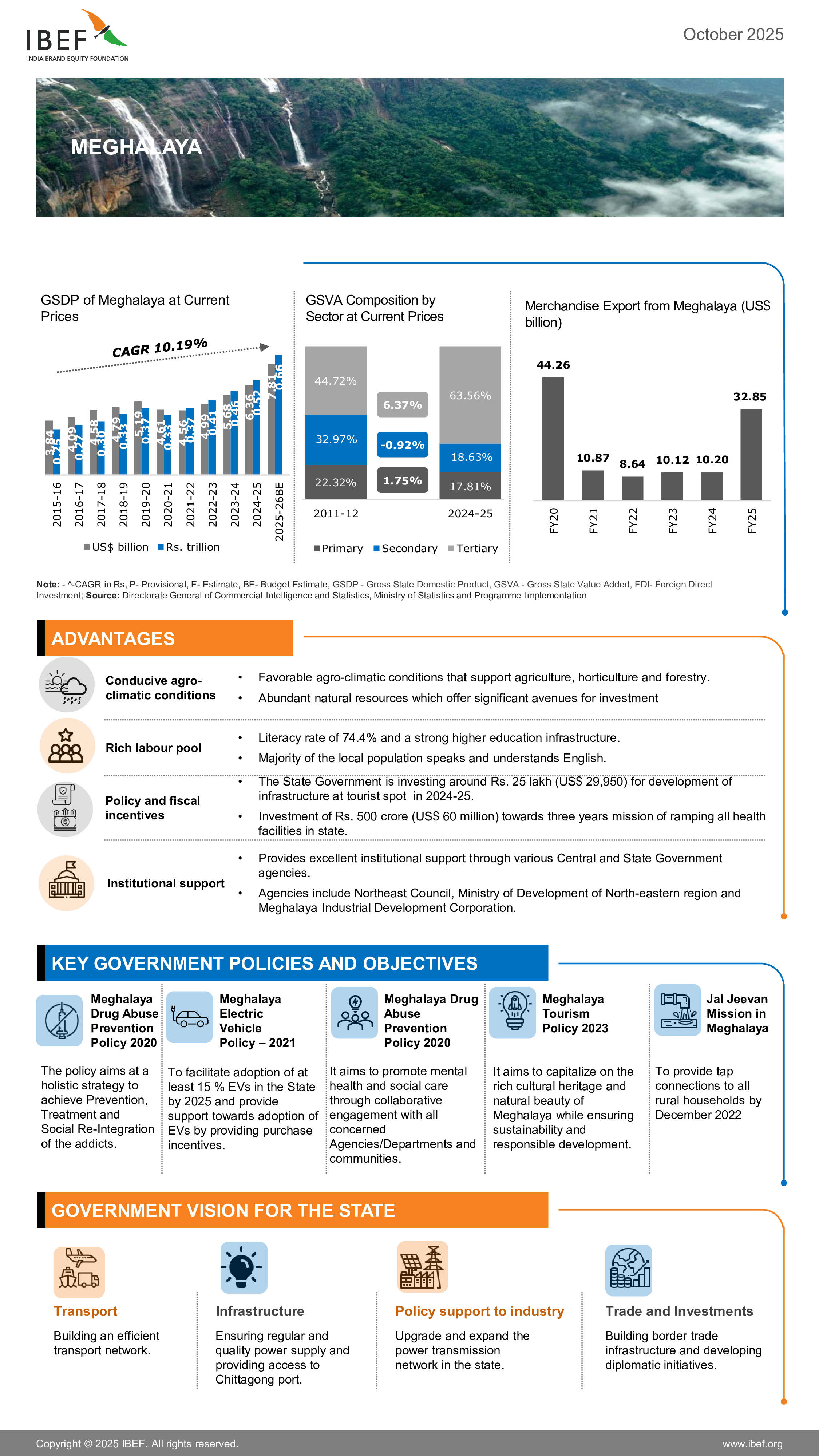 Vice-President Mr. Jagdeep Dhankhar praised Meghalaya's growth potential, emphasising self-reliance, and lauded its progress in economy, tourism, and women's empowerment, with a goal of becoming a US$ 10 billion economy by 2028.