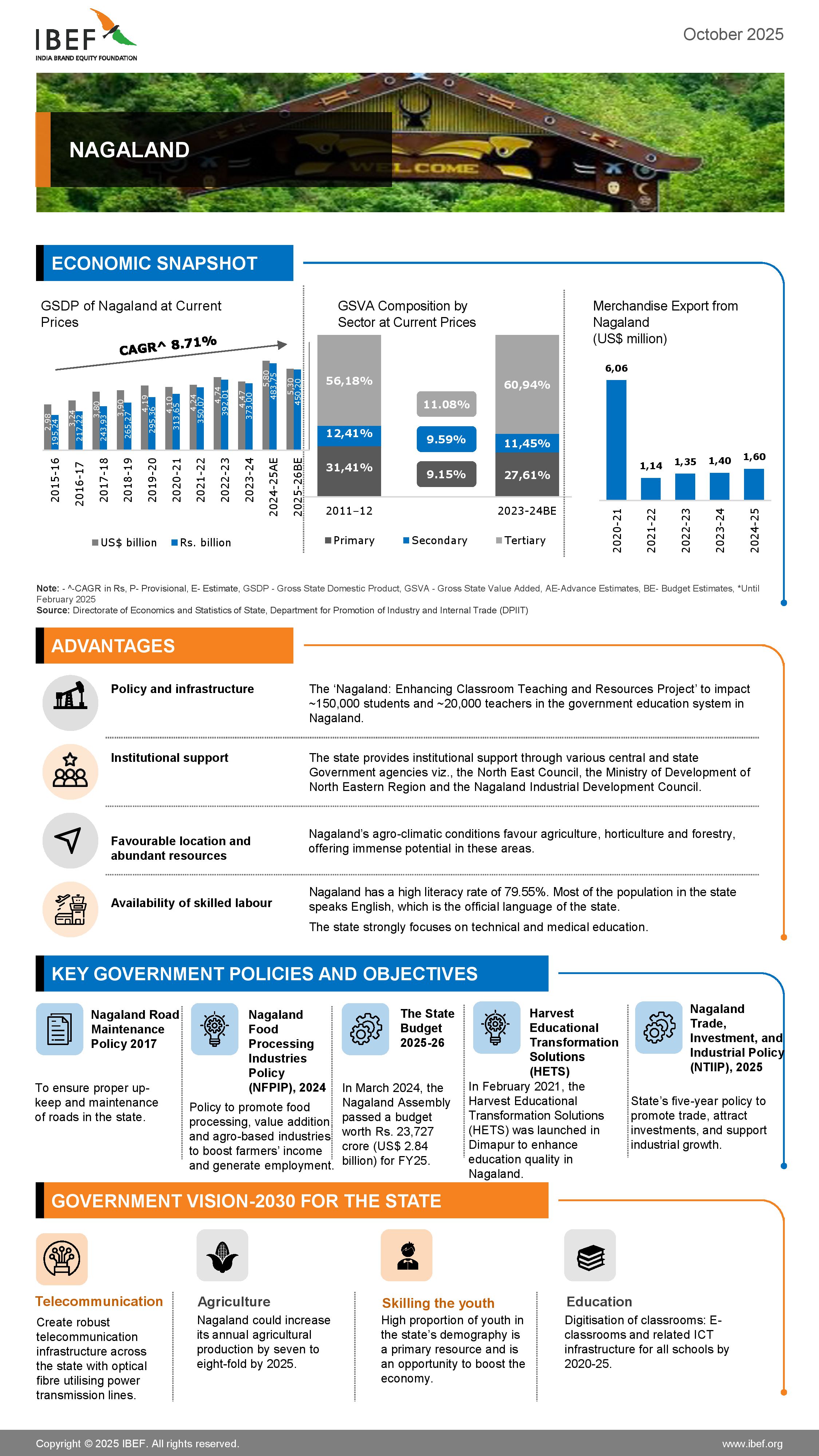 Nagaland’s estimated hydropower generation potential stood at 1,452 MW and the overall installed hydro capacity stood at 66.33 MW in May 2024, presenting huge investment opportunities in the state.