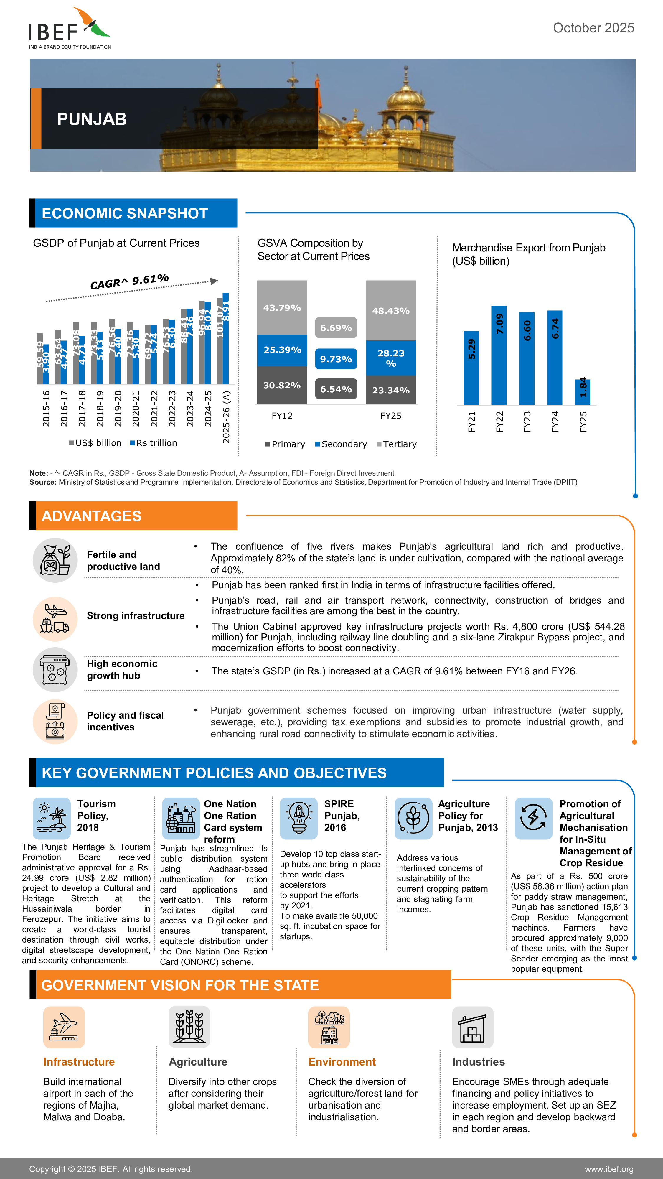 Punjab is the source of 95% of India’s woollen knitwear production, 85% of India’s sewing machine production, and 75% of India’s sports goods production.
